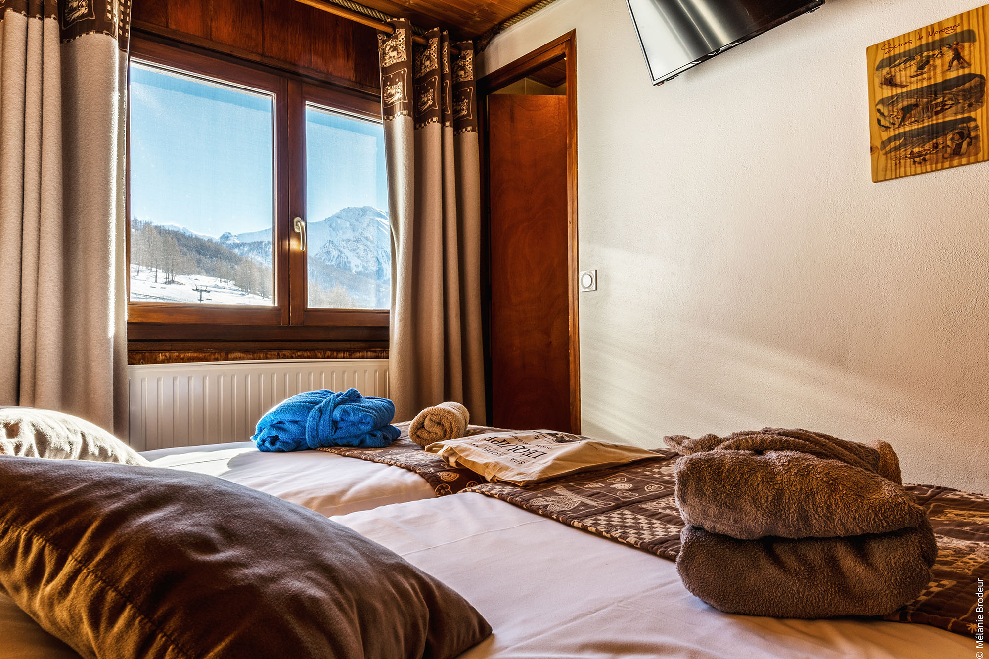 La majorité des chambres ont un balcon pour profiter de la belle vue des montagnes du Queyras.